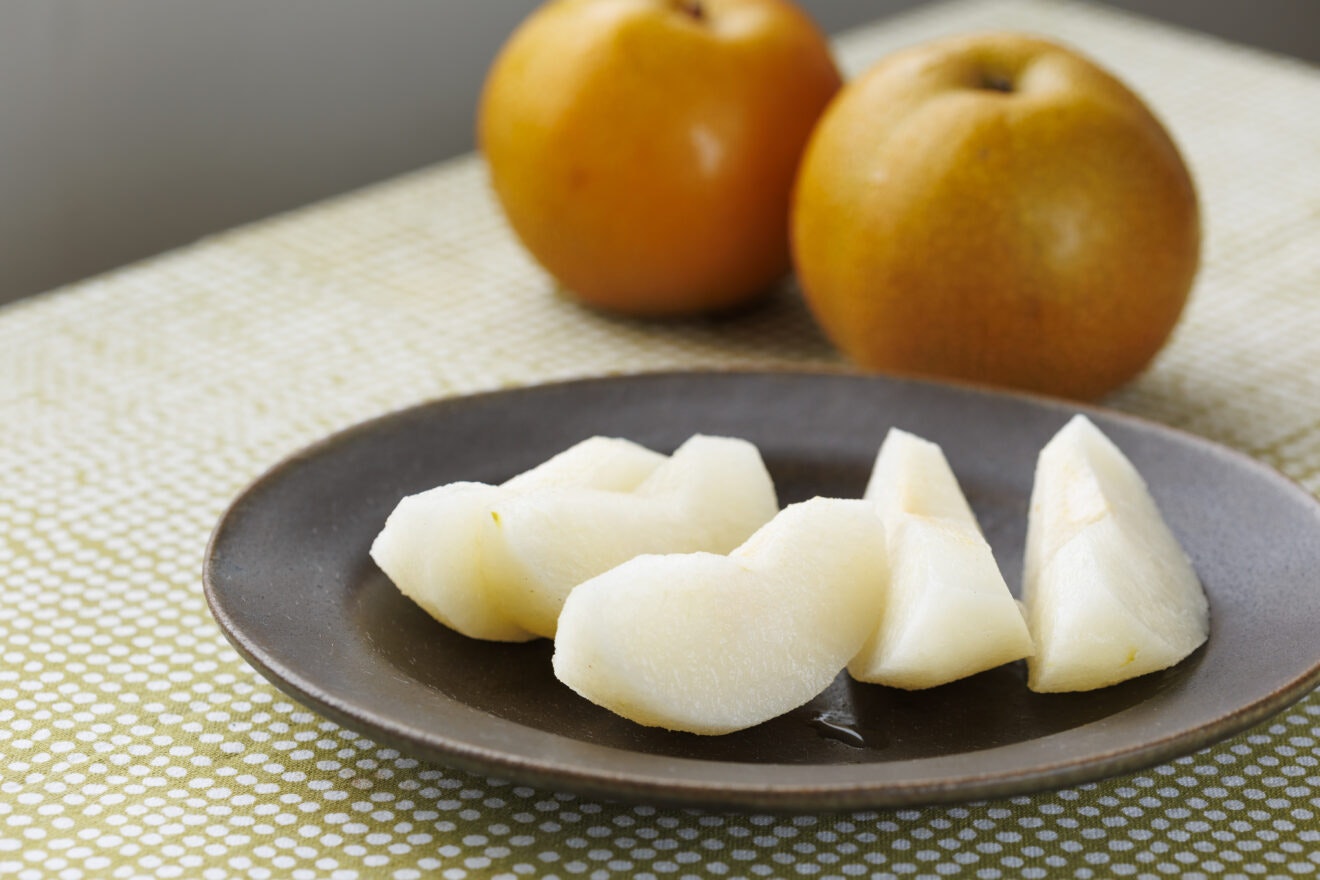 坂ノ途中スタッフのいちおしは、梨をひと晩日本酒に漬けていただく「梨の日本酒漬け」。梨の甘さと日本酒の旨みがよく合って、たまらない美味しさです。お酒が好きなかたは試してみてくださいね。
