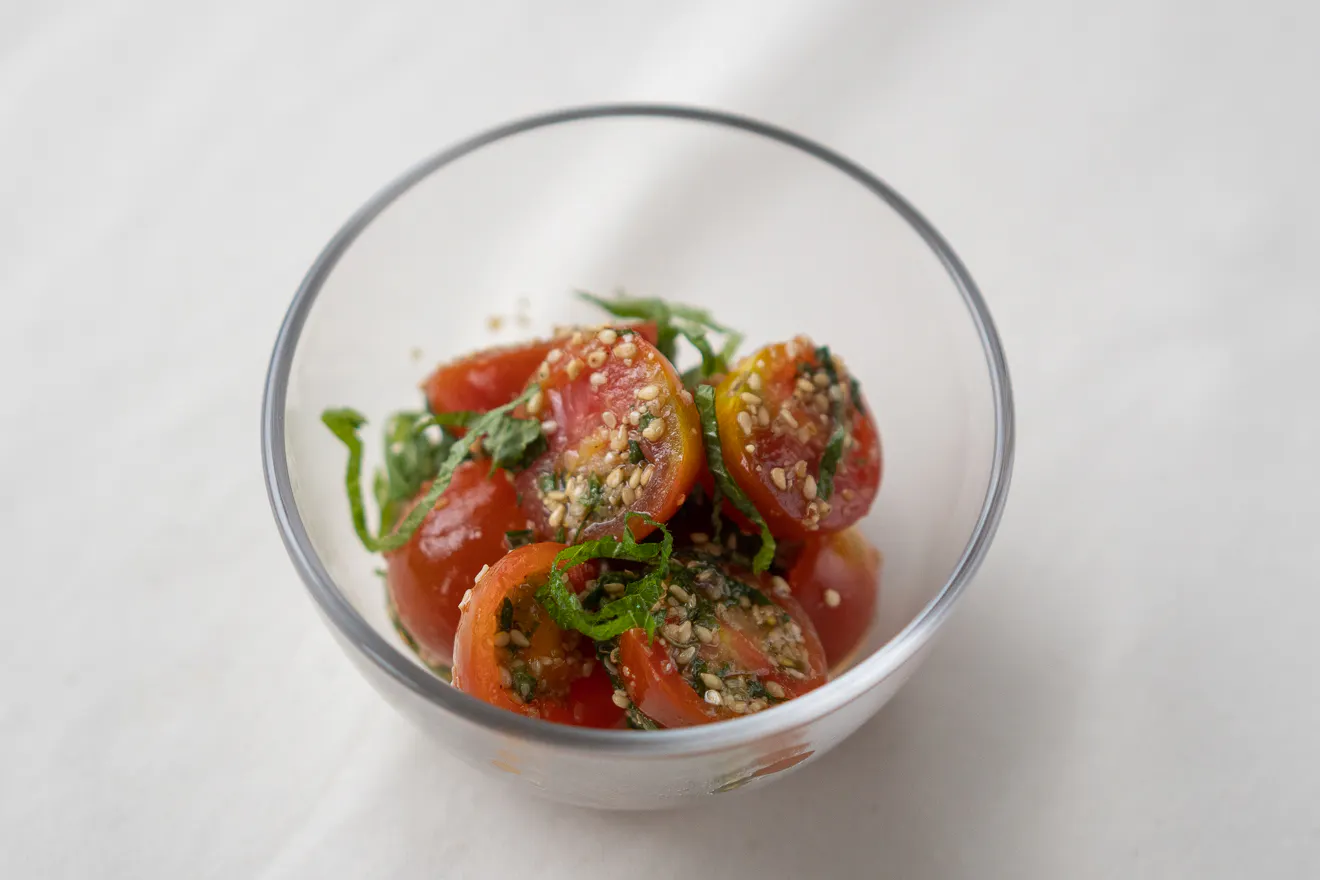 甘酸っぱいミニトマトを、ごま酢でさわやかに味わいましょう。