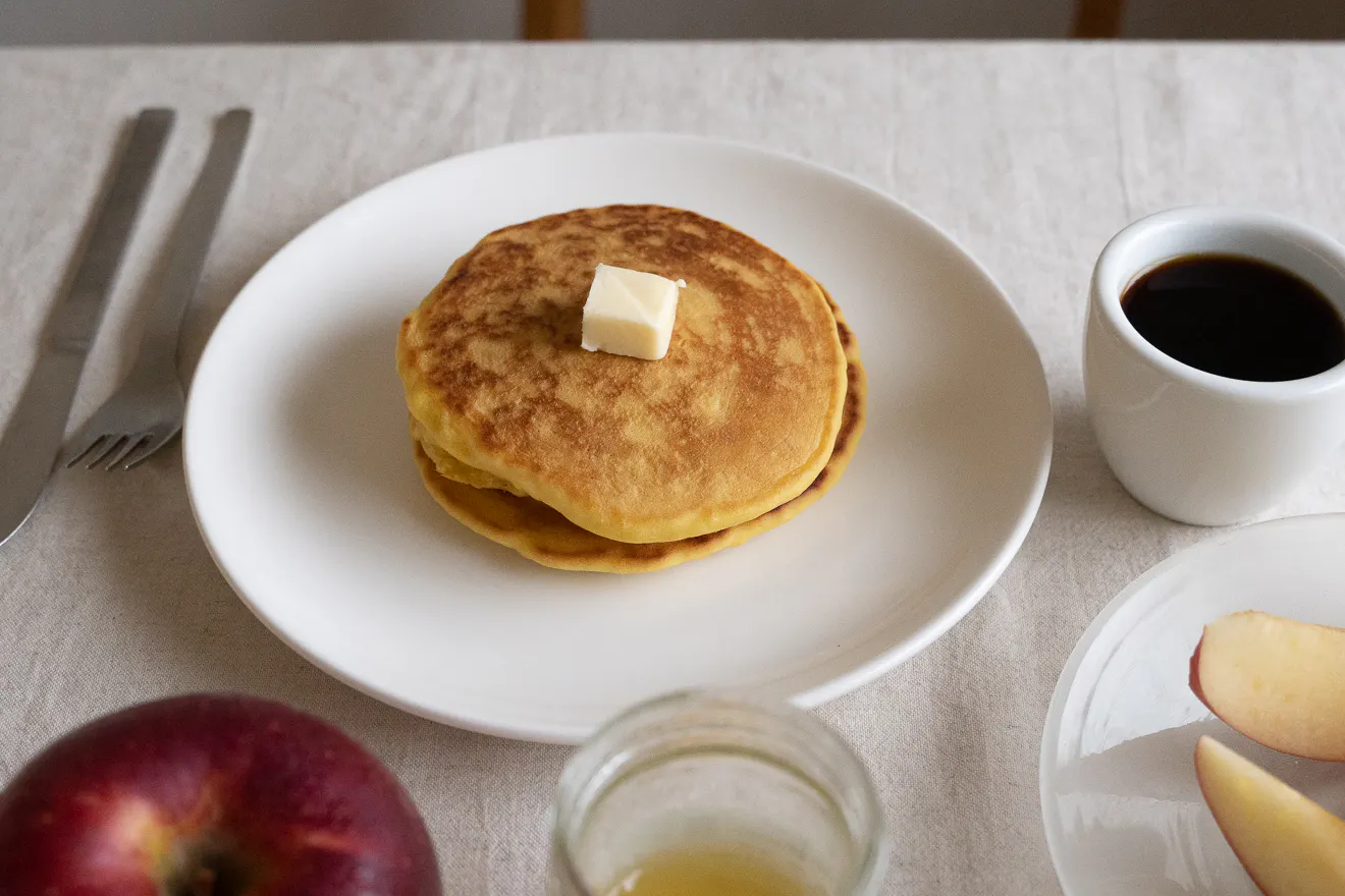 休日の朝、コーヒーを淹れ、音楽を流し、ゆっくり作って味わいたいパンケーキ。「米粉のパンケーキミックス」は、やさしいお米の甘みと、もっちり・かりっとの食感が好きです。ぺろりと何枚でも食べられるから、食べすぎ注意。バナナとジャムや、目玉焼き・ウインナー・サラダなど、その日の気分に合わせて、組み合わせを楽しみます。