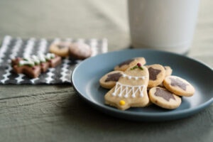 卵を使わずに作られているぎゅうにゅうとみるくココアはほろほろとした食感。甘さ控えめのぎゅうにゅうは、噛むとミルクの香りが口に広がります。みるくココアはしっかりとココアの味わいを感じていただけます。クリスマスのモチーフのアイシングがかわいらしいです。