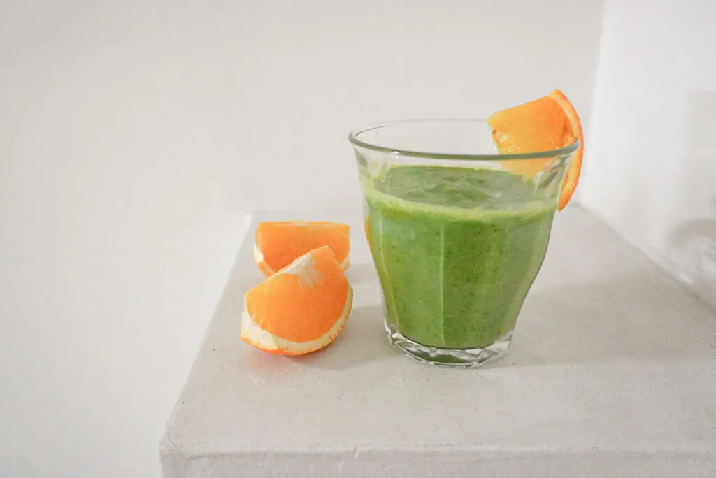 ケールの苦味に柑橘の甘酸っぱさをプラスして、すっきり飲みやすい味わいに。お好みでバナナを加えてもおいしいです。